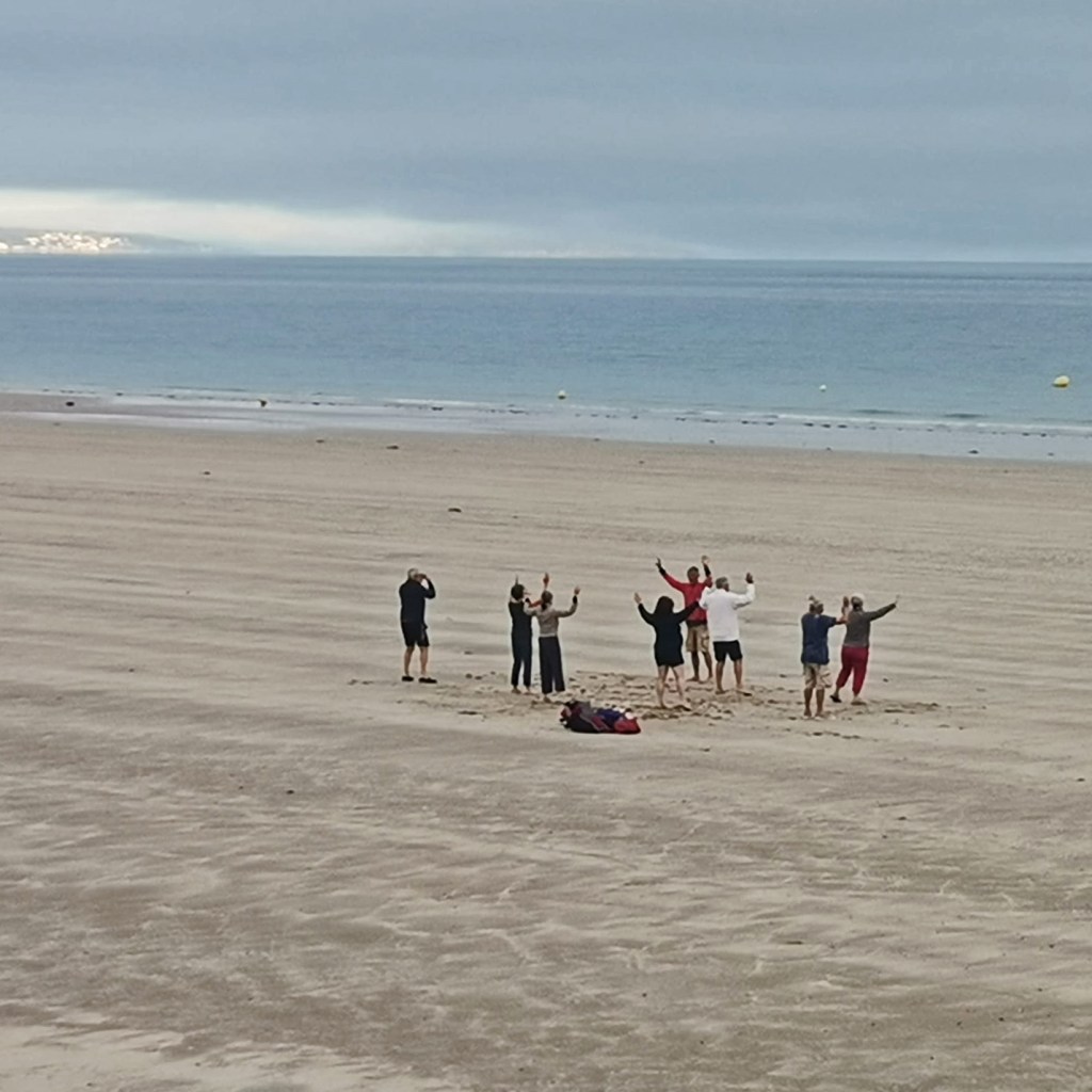 Le 2 août, à 7 heures du matin, sur la plage du Val André, la plage est déserte, un groupe d’irréductibles taïcheurs se lance dans la pratique !