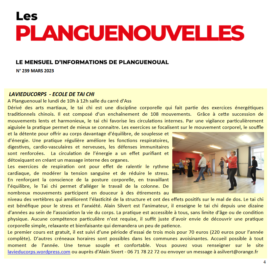 Planguenouvelles mars 2023 Publié parAlain Silvert8 mars 2023Publié dansLa pratique du Taï Chi, vie de l'association Partager : Partager sur X(ouvre dans une nouvelle fenêtre) X Partager sur Facebook(ouvre dans une nouvelle fenêtre) Facebook J’aime chargement… Similaire